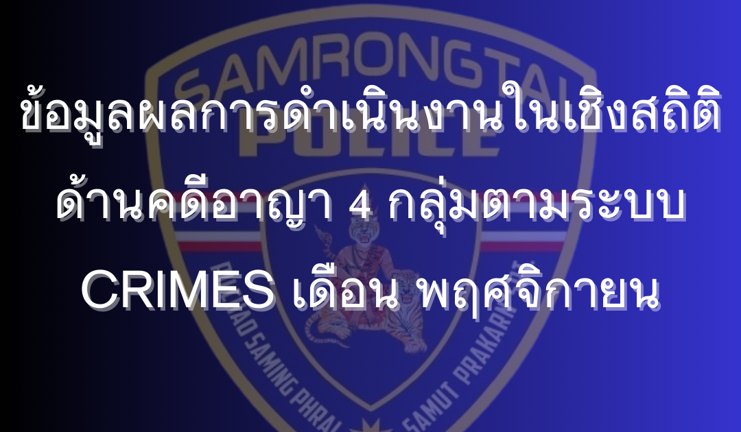 ข้อมูลผลการดำเนินงานในเชิงสถิติด้านคดีอาญา 4 กลุ่มตามระบบ CRIMES เดือน พฤศจิกายน 2567