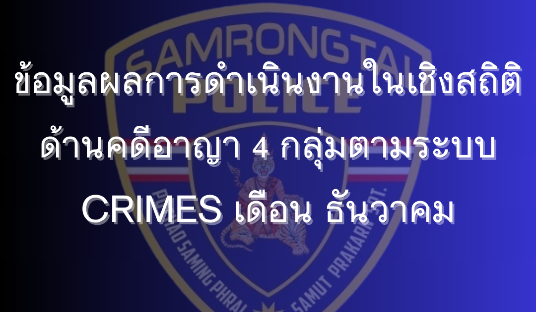 ข้อมูลผลการดำเนินงานในเชิงสถิติด้านคดีอาญา 4 กลุ่มตามระบบ CRIMES เดือน ธันวาคม 2567