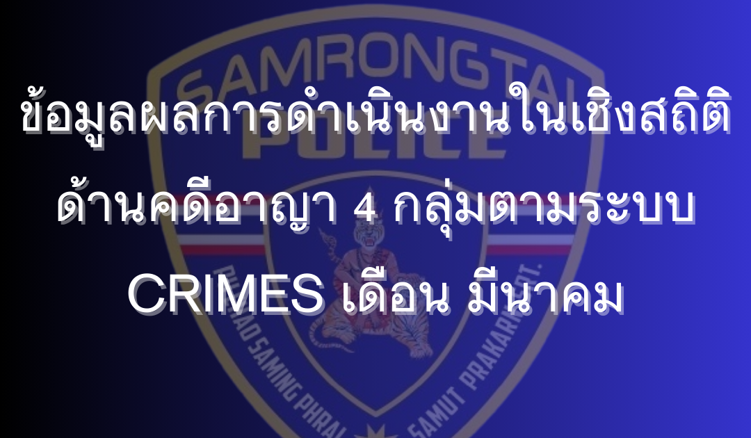 ข้อมูลผลการดำเนินงานในเชิงสถิติด้านคดีอาญา 4 กลุ่มตามระบบ CRIMES ตั้งแต่วันที่ 31 ตุลาคม 2567 ถึง 31 มีนาคม 2568