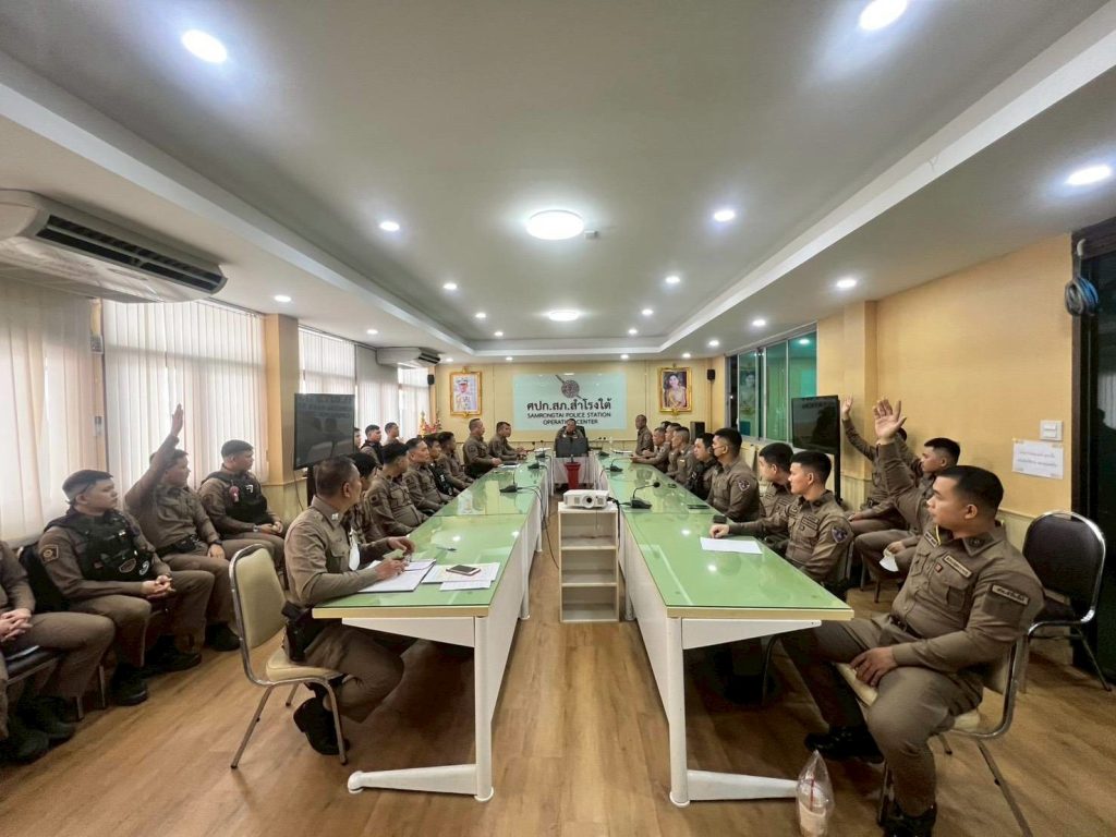 ร่วมประชุม หัวหน้างานทุกสายงานและข้าราชการตำรวจทุกสายงานทุกนาย ร่วม ว.28 ข้าราชการตำรวจ งานป้องกันและปราบปราม สภ.สำโรงใต้ ณ ที่ตั้ง สภ. ห้องประชุม ศปก.สภ.สำโรงใต้