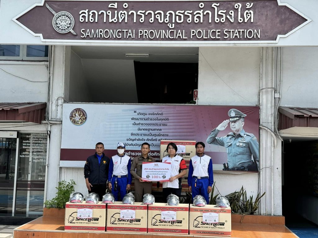 ได้รับมอบหมวกนิรภัย จากบริษัท ฮอนด้า สมุทรปราการ จำกัด ตามโครงการจิตอาสา เพื่อน รณรงค์ป้องกันอุบัติเหตุทางถนนและเสริมสร้างวินัยจราจร ของสถานีตำรวจภูธรสำโรงใต้ จำนวน 100 ใบ