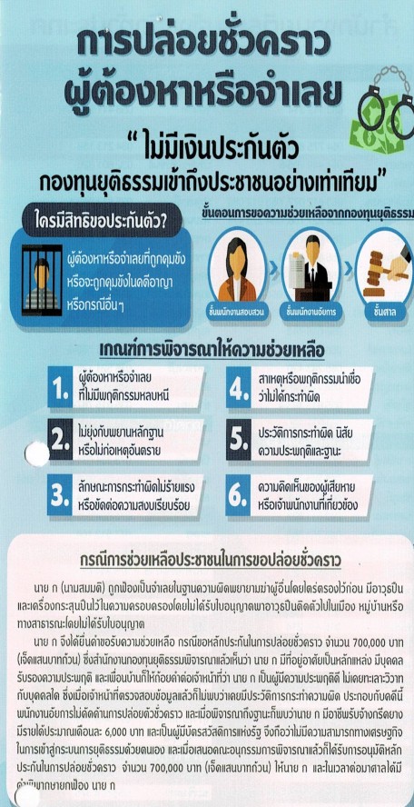 2.สิทธิการขอรับการช่วยเหลือประชาชนในการดำเนินคดี การปล่อยตัวชั่วคราวผู้ต้องหาหรือจำเลย และการถูกละเมิดสิทธิมนุษยชนจากกองทุนยุติธรรม