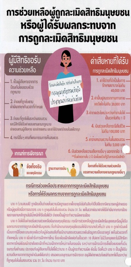 3) การช่วยเหลือผู้ถูกละเมิดสิทธิมนุษยชนหรือผู้ได้รับผลกระทบจากการถูกละเมิดสิทธิมนุษยชน