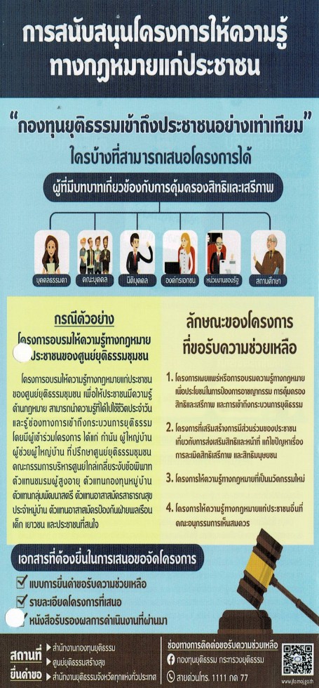 4) การสนับสนุนโครงการให้ความรู้ทางกฎหมายแก่ประชาชน